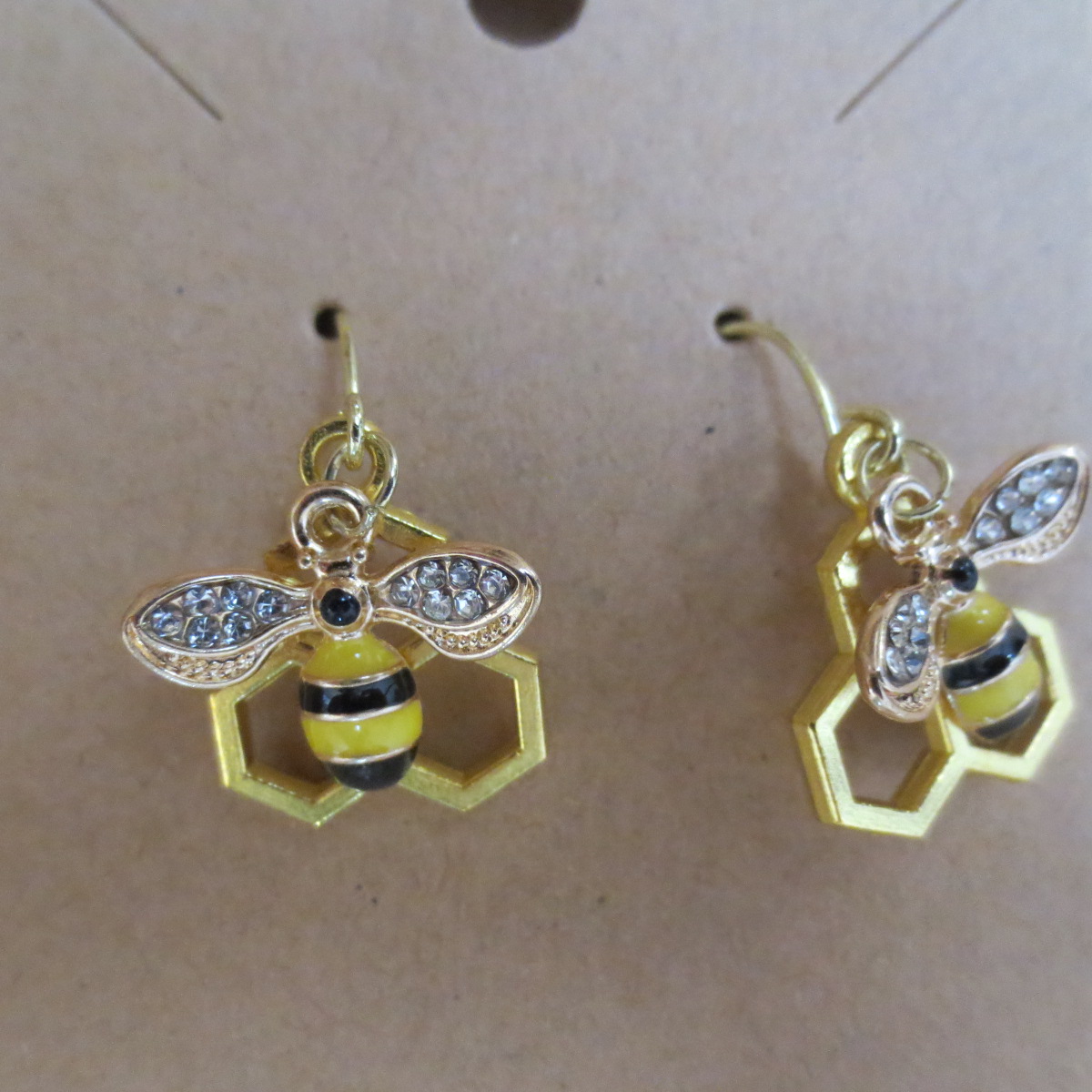 Adorable and sparkly honey bee earrings. Earring hooks are made of solid brass, 14k gold plated. Lead, Nickel, Cadmium Free and Hypoallergenic. $5.00 + tax
