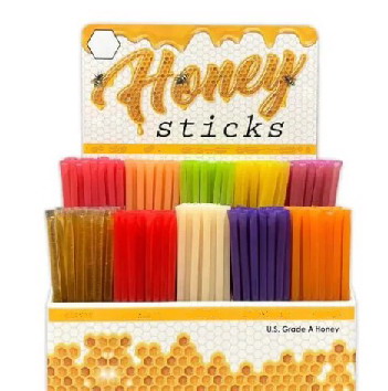 5 grams of honey in an easy to carry straw. Bring it along with you to add to your favorite hot beverage. Convenient, portable BPA-free tubes filled with pure or flavored honey, perfect for sweetening drinks like tea and coffee or as a quick, natural energy snack and available in a variety of flavors - offering a mess-free way to enjoy honey on the go $0.50 each. Flavors include Chocolate, Licorice, Peppermint, Watermelon, Sour lemon, Cherry, Natural Honey, Pina Colada, Pink Lemonade, Sour apple. Flavors subject to availability. $0.50 each.