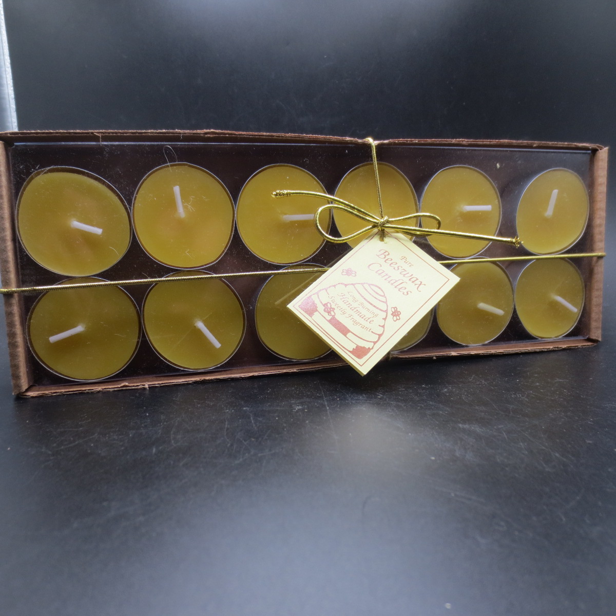 Pure beeswax tealights in a lovely 12-pack - the perfect gift! $10.00 + tax