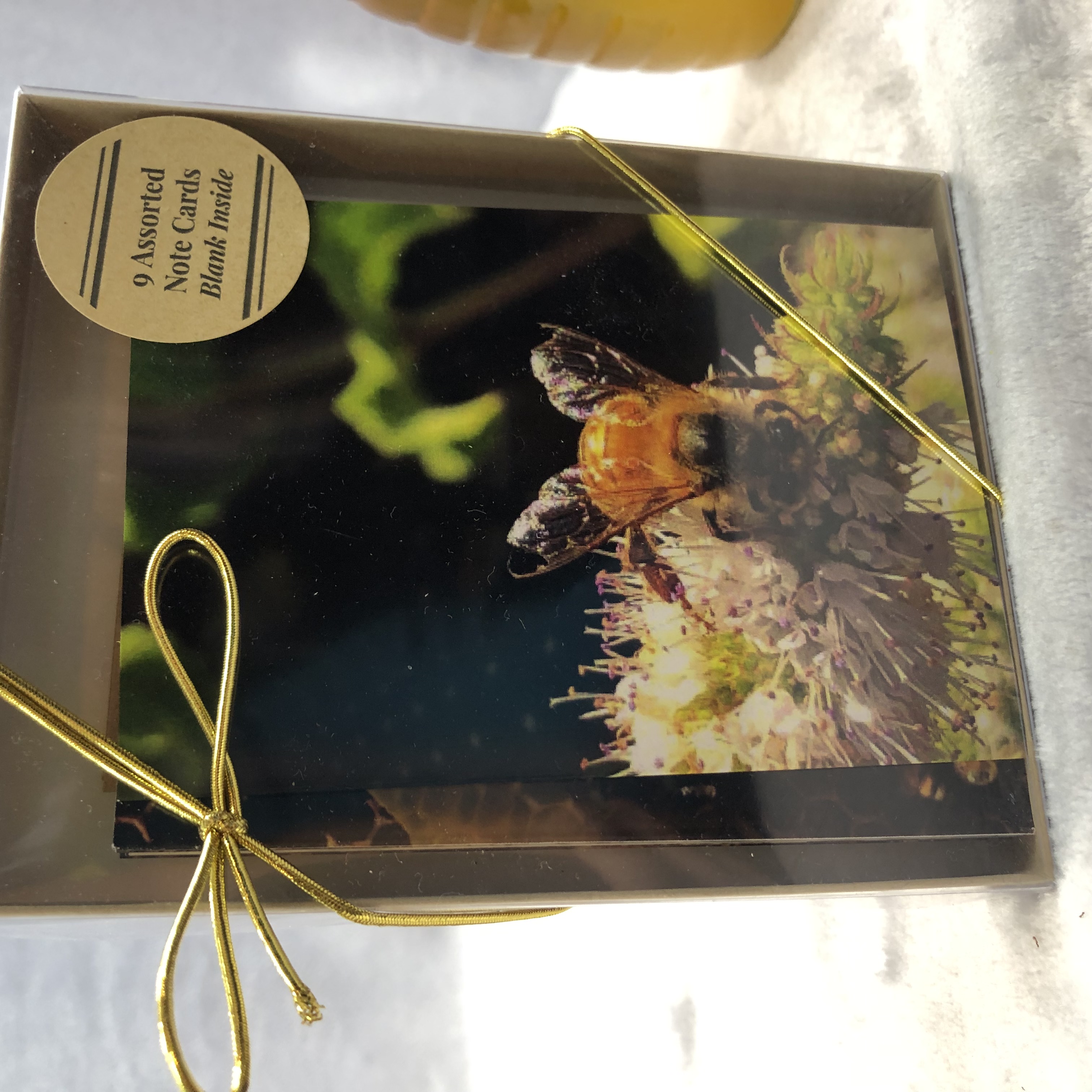 An assortment of unique and up-close photos of the life of the endangered honey bee. The inside of each card is blank for your own personal message. $5.00 + tax