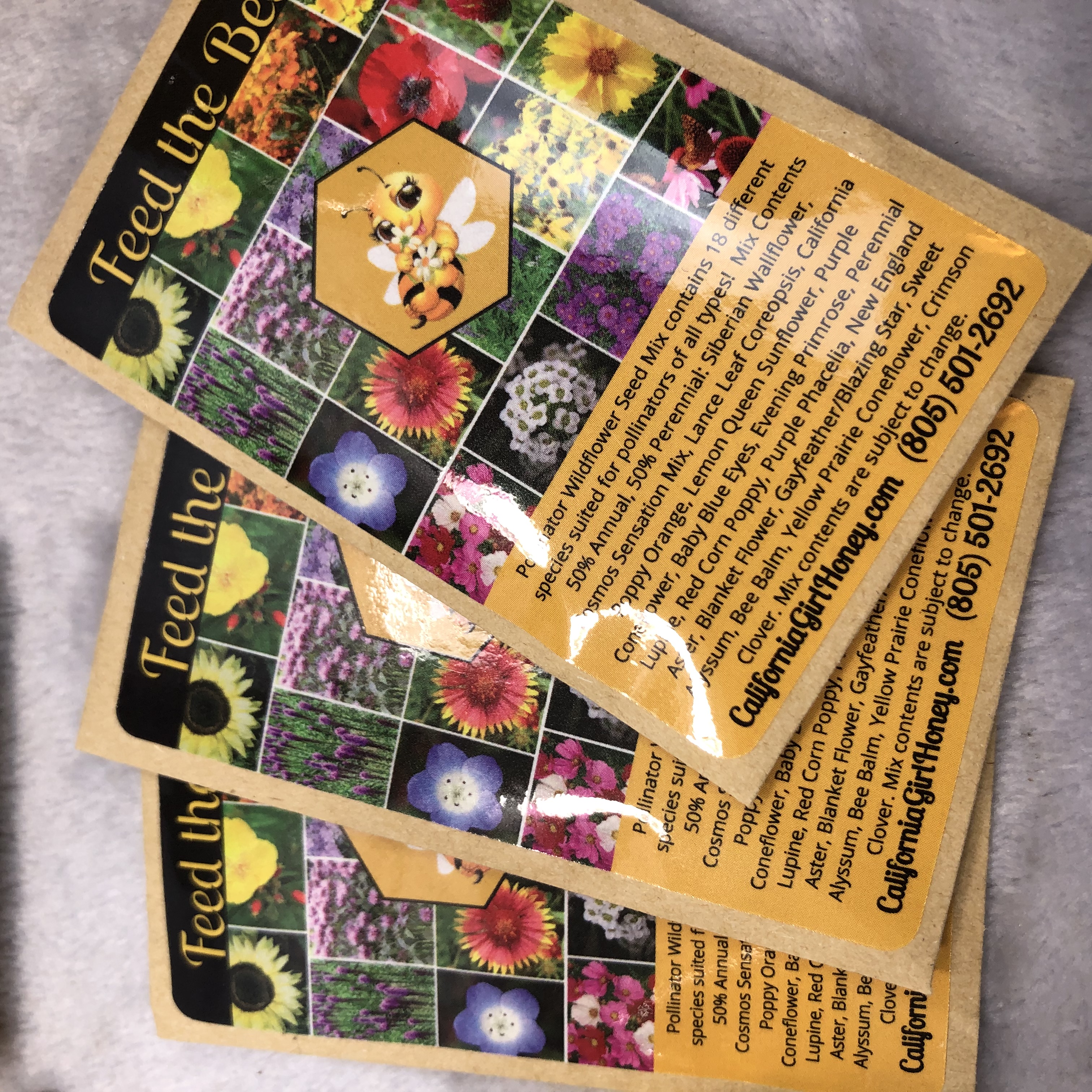 An assortment of native California seeds that are favored by pollinators. Plant these seeds and help feed the bees! $2.00 + tax