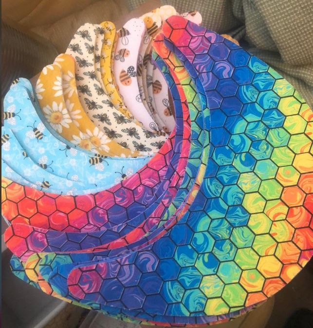 Lightweight foam visors are covered in various bee-themed fabric designs. Show the world you care about the honey bees! One size fits most. $5.00 + tax